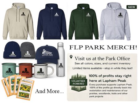 New merchandise provided by the Friends of Lapham Peak, is available at the Lapham Peak front Park office. The profits from these sales benefit projects and services directly at Lapham Peak. Stop in and see the options and colors. Mugs, Prairie Seeds, Hoodies (pullover or zippered), fluffy deluxe knit caps, […]